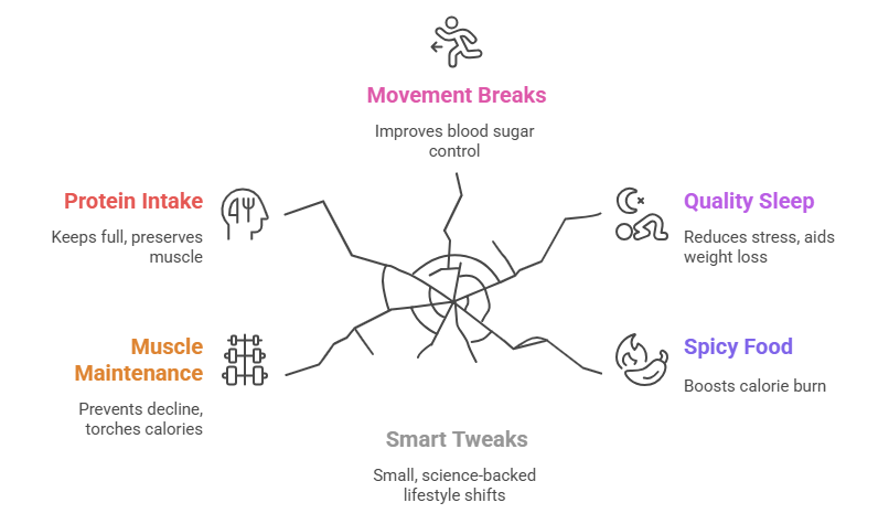 By focusing on muscle maintenance, protein-packed meals, mini-movement breaks, quality sleep and a dash of spice you’ll set yourself up for success. These small, science-backed shifts slide easily into a busy life and keep weight loss over 40 both achievable and enjoyable.